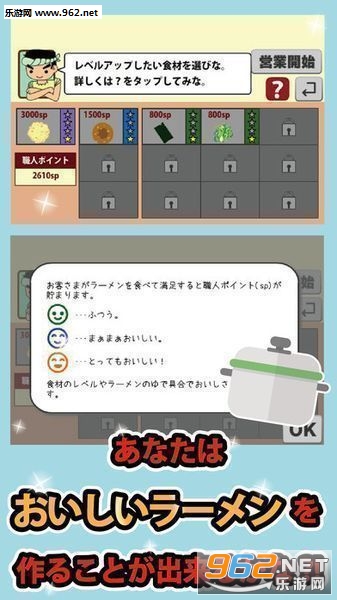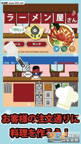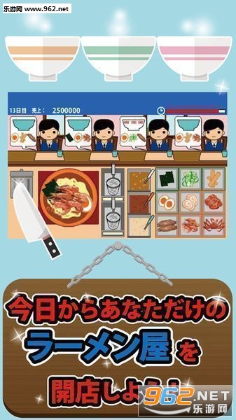 欢迎来到新的拉面店!根据店面的营业额店的等级也会上升。玩家在玩的过程中,要尽量缩短店面到达最高等级的天数。.