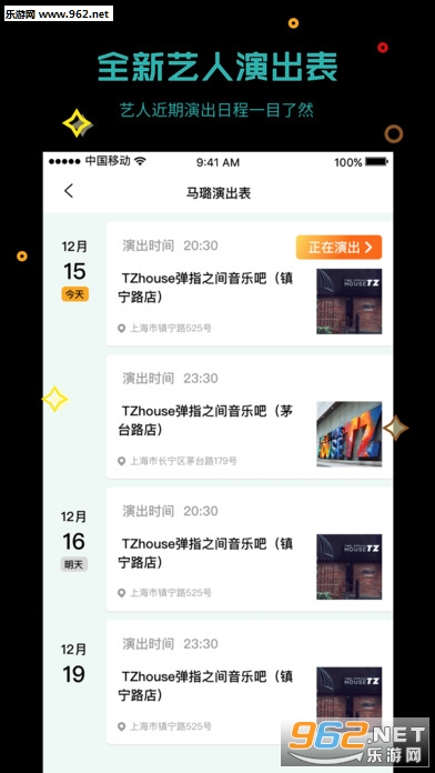 定制现场:浏览演出安排,在线下单点歌送出祝福,动动手指,将现场变为自己的Party,享受专属的私人定制;