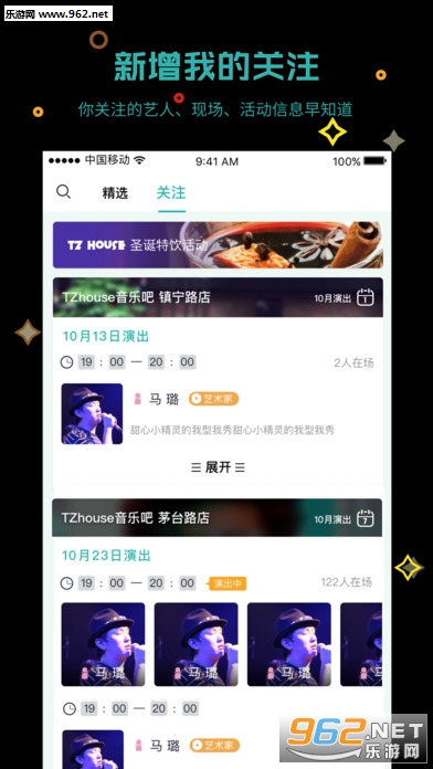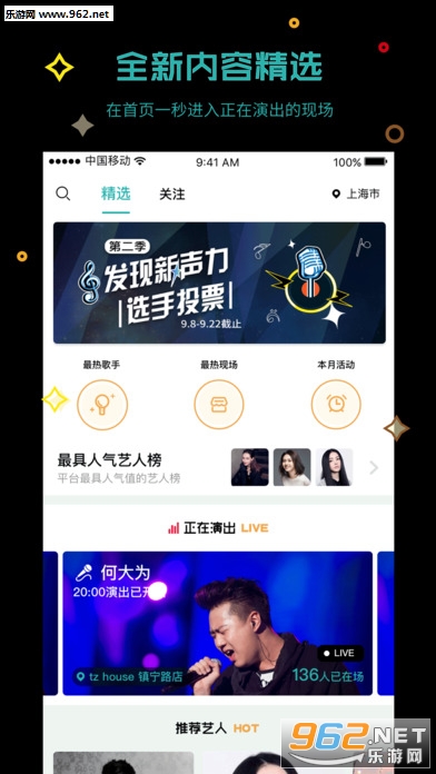 艺人资讯:掌握艺人的第一手信息,关注追踪喜爱艺人的最新动态,收听最新单曲,观看演出视频;