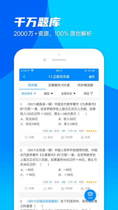 书包装满各种工具书,习题册,不堪重负?全学科海量题库一网打尽,集千名老师七年心血积累而成,权威标准,每天持续更新4000题!精选各地学校考试卷,历年中考高考真题试卷,任意查看!每道题目搭配考点分析答案详解!