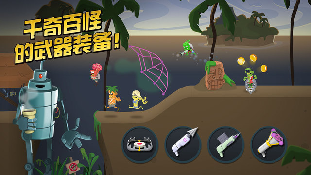 游戏的人设有很强的美漫特点,简单的线条绘制出丰富表情,尤其是那些可爱的僵尸们异常的呆萌,反观主角,一个绿皮外星人,一副奸诈的表情,就差把坏人这两个字刻在头上了。