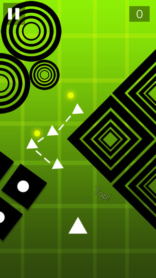 只需通过点击屏幕的左半边和右半边,就可以控制小箭头左右移动,以避开各种障碍,其中,凡是黑色的障碍物都属于引导障碍,它们所表现的样子可能是圆形的、方形的,甚至是齿轮形状的,感觉就像是万重难关摆在前面一样。但当你的小箭头碰到它们后,小箭头不但没有被碎掉,反而能借助它们的引导走向正确的路。