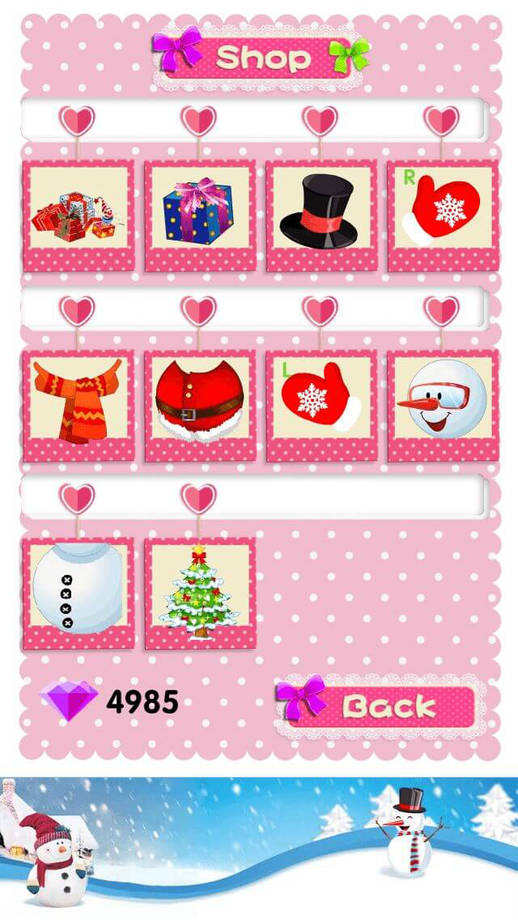 《可爱的雪人》是一款以雪人为题材的装扮类趣味休闲手游,游戏中会有各种道具供玩家使用,也可以在商店购买自己想要的物品。游戏玩法简单,玩家可以为雪人装扮上各种或美丽或或喜庆的装饰品和衣服,富有趣味,适合休闲时玩。