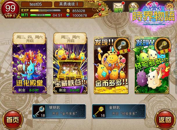 十大丰富副本满足玩家对游戏体验的各种需求,各种限时副本包括有进化乐园、欲望之源、宝藏峡谷、战魂聚集地、光明顶峰、暗黑深渊等,各类副本产出不同,除了丰富的游戏道具,还有大量金币跟经验值,妈妈再也不用担心我的升级强化啦。