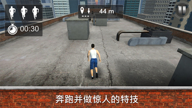 《跑酷模拟器3D》(Parkour Simulator3D)是一款画面制作非常逼真的3D跑酷手游,其实本作的核心玩法其实还是常见的竖屏三轨道跑酷类手游的玩法,玩家要操作一个身手矫健的汉子在天台跑酷,不断的跳高进行攀登,还要克服在你路上的每一个障碍。