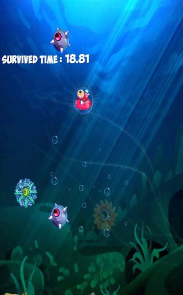 《指尖求生》是一款超休闲游戏,玩家在游戏中通过手指来控制自己的鱼儿不要被其他的鱼吃掉,游戏采取的是无尽模式,生存的世界越长,分数越高。游戏中有两种道具可以使用,第一种获取时会在角色周围产生爆炸,从而消除危险,第二种则可以让角色无敌3秒。