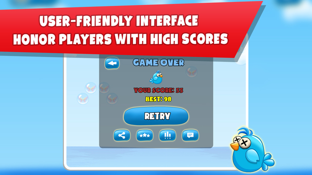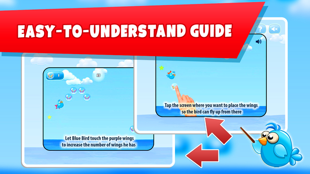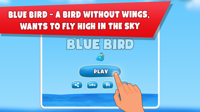 《蓝鸟翱翔天空》Blue Bird Fly high in the sky是一款有意思特殊的休闲作品,也带有虐心向!玩家点击屏幕开始游戏后,小鸟会以抛物线的轨迹下落,在小鸟下落时点击小鸟,小鸟便能得到一双翅膀往上飞跃一段距离,但一对翅膀只能让小鸟飞行一次。