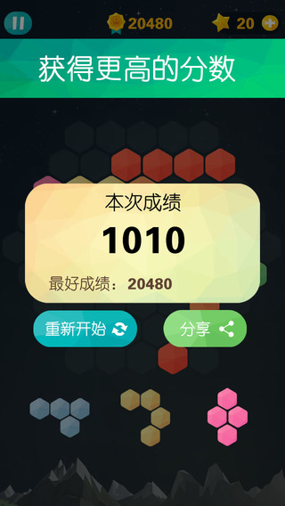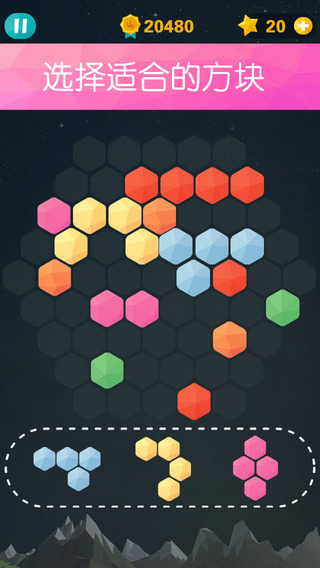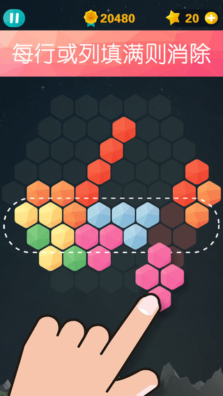非常新颖的俄罗斯六边形消除玩法,游戏背景清新简洁,玩法简单,挑战的智慧极限!