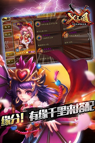 武将缘分:缘分分为人物缘分,装备缘分和阵法缘分,缘分可以增加武将属性,增强玩家的收集目的性。
