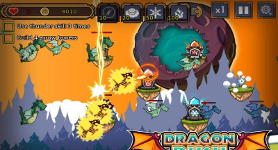 《巨龙冲冲冲 Dragon Rush》是一款魔幻题材的塔防游戏。营建,升级,防御,《巨龙冲冲冲 Dragon Rush》开战了。拥有不同的游戏模式,绝对不会让你感到厌倦。玩法简易上手,只需要点击和拖拉。拥有100关普通关卡,20关奖励关卡和挑战大怪关卡。