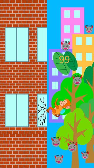 戴着口罩的它,听说楼层越高,PM2.5的浓度就越低,于是它开始了逃离雾霾的行动!你只需轻轻点击和滑动屏幕,看似操作非常简单,不过,逃离雾霾不是那么简单。 掌握好节奏,你能让它爬到多少层楼呢?快来看看!