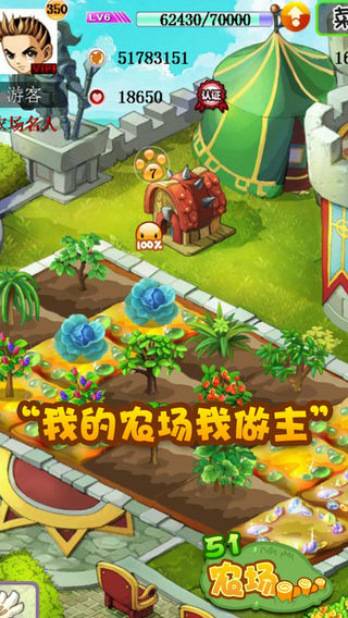 《51农场》是由掌游科技倾心推出的模拟养成游戏,其画面清新,玩法简单,跟《全民农场》差不多,需要玩家扮演一名农场主,通过种植作物,饲养动物,经营农作物商品来体验农场的欢乐生活,同时还可把自己收获的果实拿到商店出售,换取更多金币和种子,以扩大自己的农场,成为最大的农场主!
