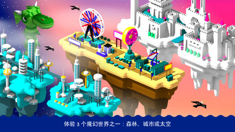 3 个神奇世界:太空、森林和城市 - 均以华美 3D 形式呈现,采用了大量便于儿童操控的最新技术。