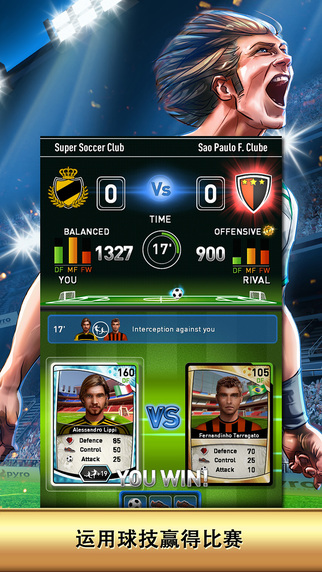 《超级足球俱乐部 Super Soccer Club》是由游戏大厂Chillingo联手Pyro Mobile打造的卡牌策略游戏。在游戏中,玩家需要从零开始创建一家足球俱乐部,同时也要全方位的经营这家俱乐部。你需要追踪每名球员的状态和成长,通过赢得比赛获取金币购买更强力的装备道具、提升他们的健康指数。更重要的是,你需要做好详细的赛后分析,并根据球队的情况来调整你的决策。