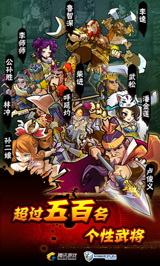 个性鲜明的武将---延续QQ水浒中经典的武将风格、专业配音演员重新演绎水浒传奇武将,完美再现水浒好汉的魅力!