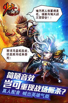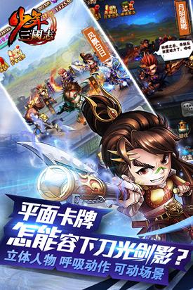 《少年三国志》是一款以超爽合击技,酷炫战斗为主打的立体卡牌手游。玩法突破了传统卡牌的人物羁绊,以最直接的武将合体大招,配合流畅的连击特效享受“啪啪啪”的破敌快感。游戏赋予每个人一张16岁的脸,摒弃了传统三国的尔虞我诈和英雄迟暮,而是展现每个三国人物生命中最辉煌灿烂的一面,让你置身少年酷炫的热血情怀之中。独具个性的武将配音,栩栩如生的动态场景,带你经历那个荡气回肠的乱世!