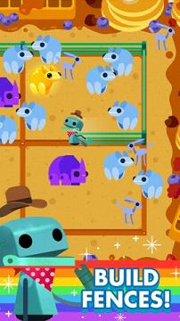 游戏还是使用了外星人的元素,不同的是游戏的主角是一名牛仔而不是奶牛(汗一把,貌似也和牛有关),这位牛仔要在银河系拯救小动物,通过穿梭在各种道道上拦住这些小动物来获得分数,游戏中还会出现许多令人嘴馋的食物,吃饱了才有力气抓住小动物!游戏总还可以使用金钱解锁各种古怪的角色哦!