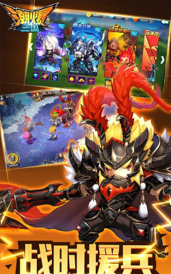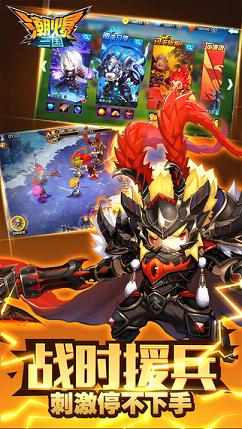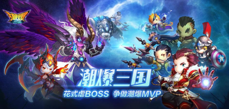 《潮爆三国》这款游戏是以三国为背景操刀的。可是它打破了大家对于三国传统的思想,颠覆了这段传统了的三国历史。为各位玩家展现的是一个你想不到的潮流三国。对于游戏画面,《潮爆三国》走着一条可爱Q版风格。帅气的三国群雄们,在这游戏里都有了一个个Q版的造型。在游戏中,角色们的造型不仅可爱,而且加入了现代的元素。对于音效画面,也紧跟潮流,在游戏里英雄们会说各种流行用语!这种全新的三国手游概念,还是为玩家们增添了不少新鲜感的。