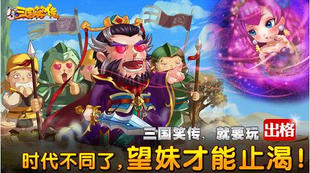 《三国笑传》是一款战棋类轻策略卡牌手机游戏。游戏以三国为时代背景,玩家通过收集游戏中的历史名将,组建自己的队伍。引入战棋玩法,在4*4格子范围内指挥武将通过策略走位,集中己方优势歼灭敌人。更有各地搞笑方言,诙谐剧情,南北逗趣,Q版武将各种卖萌,带你体验最搞笑的格子卡牌手游。