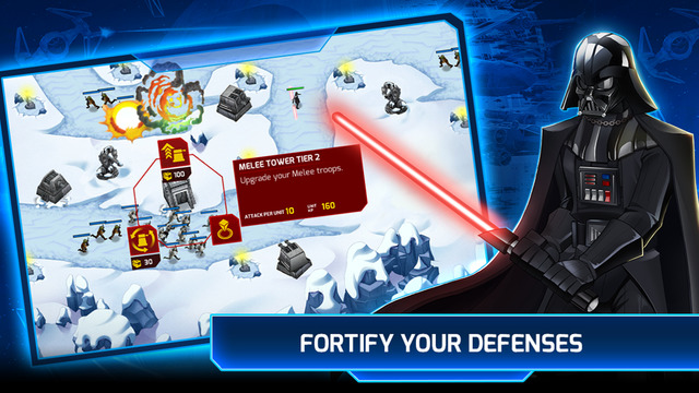 《星球大战:银河防卫 StarWars?: Galactic Defense》游戏中融合了塔防游戏的策略元素以及模拟管理的游戏元素,正邪两派的对抗都将以科幻性十足的塔防战斗来呈现,还有许多经典的电影角色会在游戏中现身,让人倍感期待。