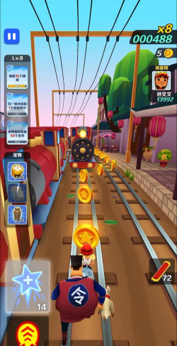 《欢乐奔跑2》的游戏画面整体上比较简单,不过这种超快节奏的游戏也没闲心欣赏路上的风景了,不小心就是一个死,死完之后继续跑。道具有攻击型、防守型和增强型。攻击型的有电锯、闪电等,前者可以将你的对手锯成两半,也是最血腥的;闪电就是可以召唤出闪电将对手给电死;也有防身的道具,比如护盾可以短时间防止被对手攻击,气球可以抵消一次被攻击;至于增强型就是如加速、火箭等加快速度等的道具,还有磁铁这个道具也很特别,可以将你附近的对手给吸回来,延缓对手的速度,道具种类多,使用方法也简单易懂,不过和有些要珍藏起来用的道具不同,你有道具就尽快用吧,因为对手也会很快攻击你,道具的补充也是很容易的。