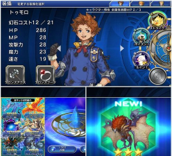 游戏中最重要的元素是幻兽,在这里幻兽可以理解成卡牌游戏中装备的“卡牌”,每个人最大装备四个。装备幻兽需要消耗相应点数,等级越高耗点越大。另外幻兽有火、风、土、水、光、暗属性,遵循 RPG 万年不变的属性相克原理,支持角色的固有属性,有战斗系、魔法系和辅助系的区分。根据人物的特性,必须分配给他们相对应的幻兽。每个幻兽对应两套技能描述,一套是特殊技能,在战斗中消耗 MP 释放,一套是幻兽召唤,可以理解为 FF 系列的召唤魔法,需要战斗中攒气槽发动。装备幻兽之后,会影响人物的 HP、MP、攻击、魔力、速度等属性,相当于通过合理的幻兽搭配,让你的队伍达到攻防平衡以及物攻和魔攻的平衡。
