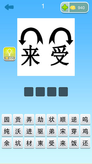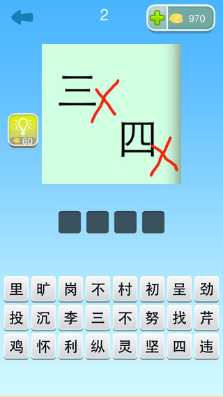大家猜成语iOS版是一款全中文的益智休闲成语竞猜游戏,成语是语言经过长期使用、锤炼而形成的固定短语,富有深刻的思想内涵,简短精辟易记易用。里面包含了成百上千个成语,来这里,展示你自己吧。考考你的功底,考考你的智商,赶紧来挑战一下猜成语吧。