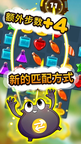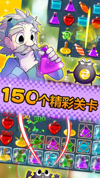 1 随着手指随心滑动,尽情享受匹配与消除药水带来的快乐与挑战。