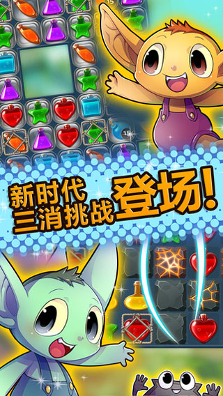 3 当你的眼前出现魔幻色彩的缤纷爆炸、充满可爱精灵的3D世界,你将感觉一切烦恼烟消云散,并沉浸在这个令人热血沸腾的游戏里。