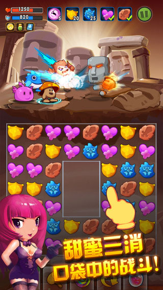 奇幻冒险是一款萌宠消消乐主题的冒险手游,在灾难来临的奇幻王国,勇敢地小萝莉带着她的宠物小精灵踏上拯救王国的冒险之旅,一路上惊险刺激,收集你的小萌宠,勇敢地战斗吧!