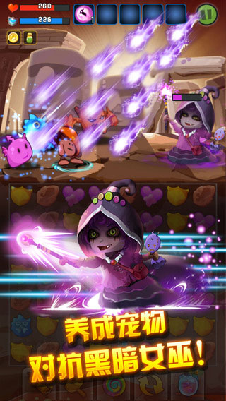 奇幻冒险在经典的三消游戏中加了许多创新元素,除了宠物精灵战斗外,还有经典耐玩的养成升级系统、趣味的宠物收集、丰富的宠物升阶、强大的技能升级……,更有BOSS黑暗女巫经典对战,这么多创新玩法您还在等什么?