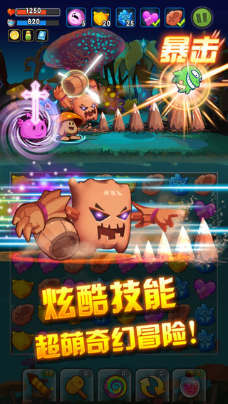 在奇幻冒险中,您将可以收集并培养不同的精灵宠物,并使用各种魔法组合消除方式触发它们酷炫的技能。口水满天飞的海洋精灵,皮糙肉厚的树妖精灵,还有憨厚可爱的蘑菇精灵……快来收集吧!小精灵们将陪您踏上征途!
