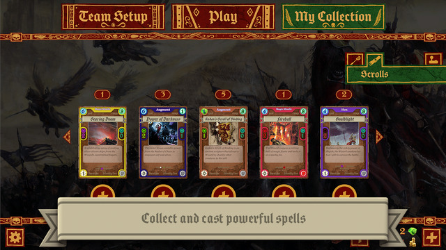 《战锤:奥术魔法》融入了战略和卡牌元素。角色在地图上行进,当战斗时会出现方格,这些方格的用途应该是显示进攻的距离和路径,当玩家战斗时就需要合理的策略来获得优势。另外,游戏中的战斗法术是通过卡牌来释放的,看来玩家要像痛快的释放魔法还需要拥有一手好牌才可以。