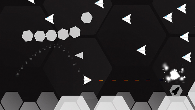 游戏采用的是经典的横版射击玩法,不过相比起传统的游戏设计,本作显然更具创意。游戏中,玩家需要控制一架由简单三角形构成的小飞机清理前方道路上的重重阻碍,并躲避不可碰撞的物体不断前行,值得一提的是,这些障碍物也都呈现几何形状,虽看似简单但又极具挑战性,感兴趣的朋友不要错过咯!