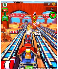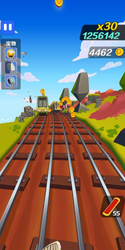 这款色彩缤纷的《小火车快跑》是很常见的竖版无限跑酷游戏,但它的主角不是人类,而是小火车,玩家通过左、右、上地划动屏幕,控制小货车左右变动轨道,向上跳跃,避开挡板、石堆和其他迎面而来的火车,并一路搜集金币和各种道具。随着游戏的进
