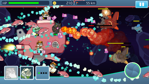 《喵星特攻队(Naughty Kitties)》是一款射击攻防游戏,你的小兵们是一群可爱又淘气的小猫咪,将它们放上战舰上就能发动攻击,将前方不断飞来的敌军一一击落,在战斗的同时,我方的飞船也会有损伤,这时就必须派出专精修理的修复猫,将战舰修理好,以便延长作战时间。