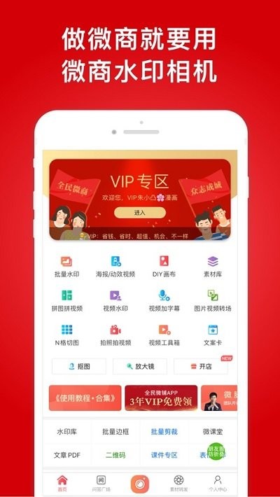 提供一站式服务微商,包括批量水印、视频水印、视频拼图、分屏视频、自由剪裁、视频海报、视频下载,图片拼图、图片海报,素材一键转发等多项功能。特别适合现在做微商的小伙伴们,打上自己的logo,再也不怕辛苦做的图被免费使用了!