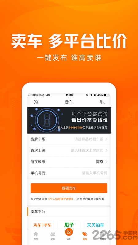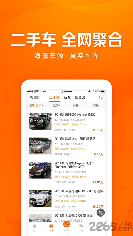 估值:基于大数据海量交易历史为您提供最准确的2265车辆估价,并提供目标车型市场分析功能,让您以“最聪明”的方式完成交易。