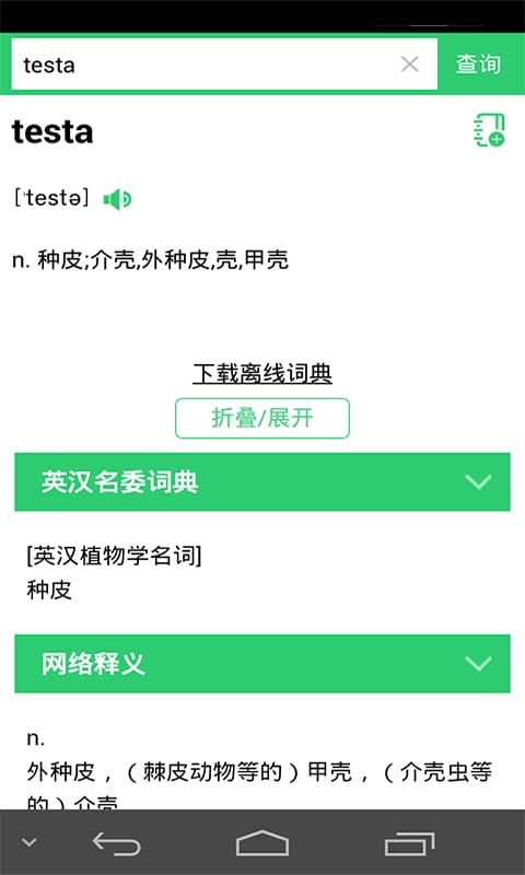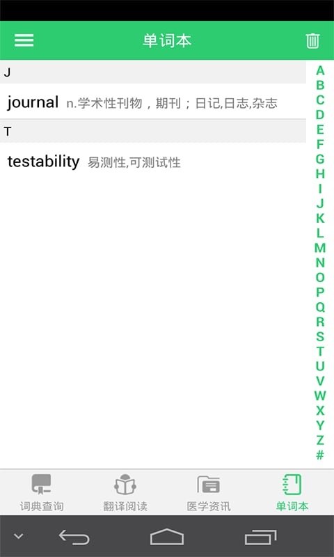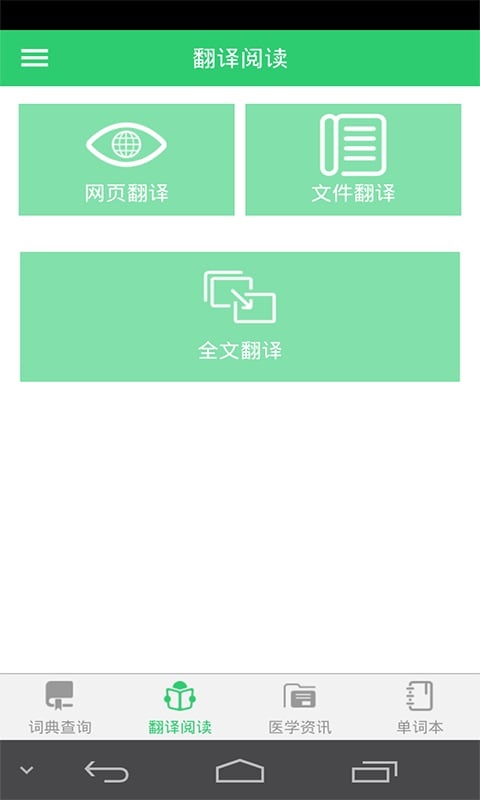 安卓版词典内置英汉简明医学词典,汉英简明医学词典,英汉通用词典和汉英通用词典共四本词典,总词汇量约300万条,可满足医学专业人员学术工作中的基本需求。