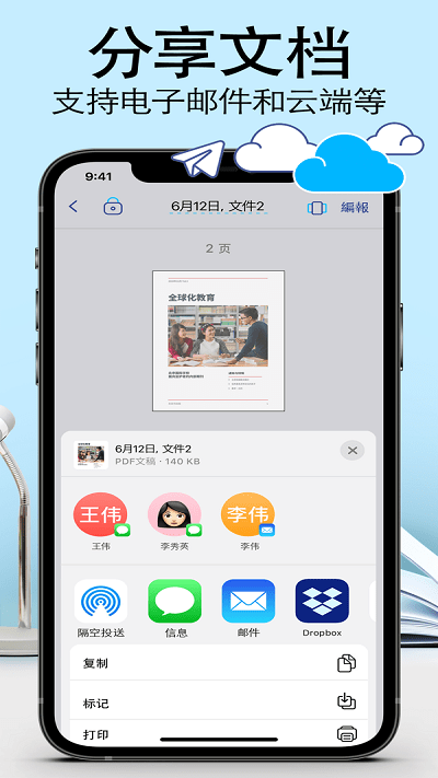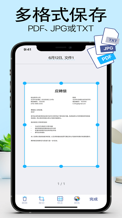 所有扫描的文档都储存在您的本地设备上,我们和任何第三方都无法取得它们。你可以使用导出选项,轻松分享文件。
