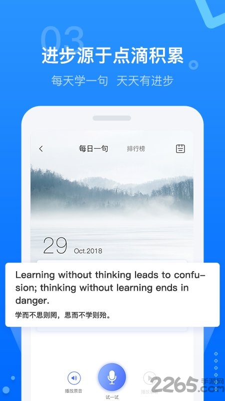 每天一句英文读一读,并由人工智能实时打分,随时随地口语练习,让自己每天进步一点