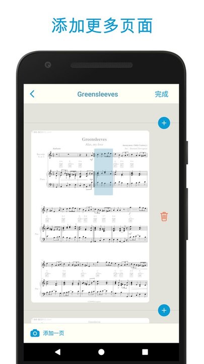 1.使用内置摄像头,即时扫描完整的活页乐谱