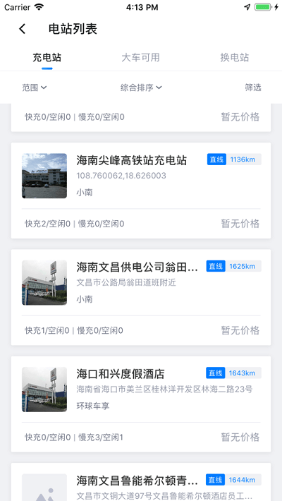 软件提供电桩查找功能,系统收集本地所有充电网点资源信息