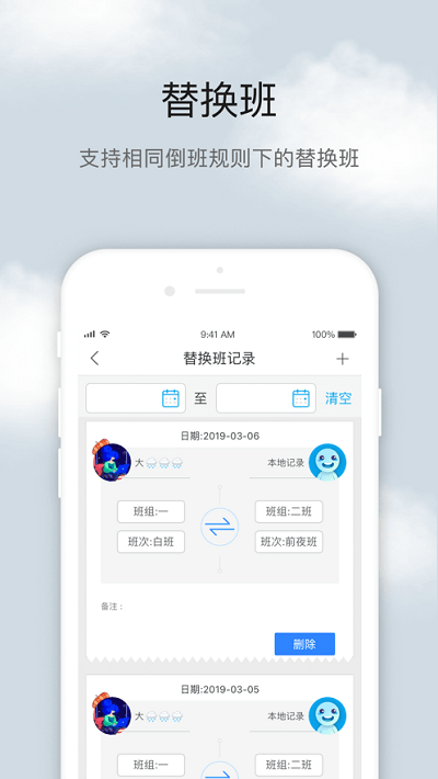 1、新增替班功能,支持不同班组间相互替班