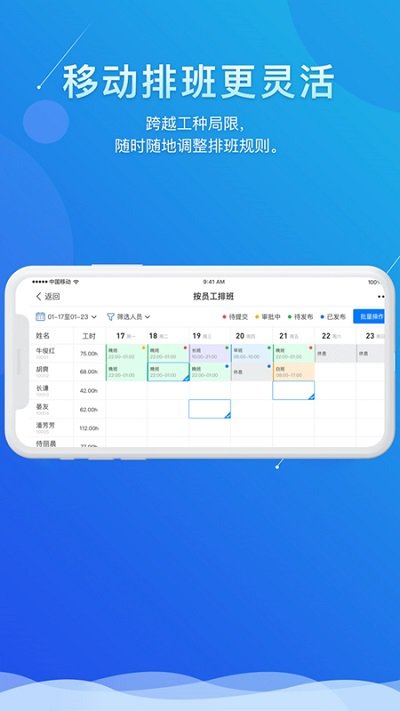 4、移动排班支持跨门店、跨区域安排,员工可以在线查看自己的班次