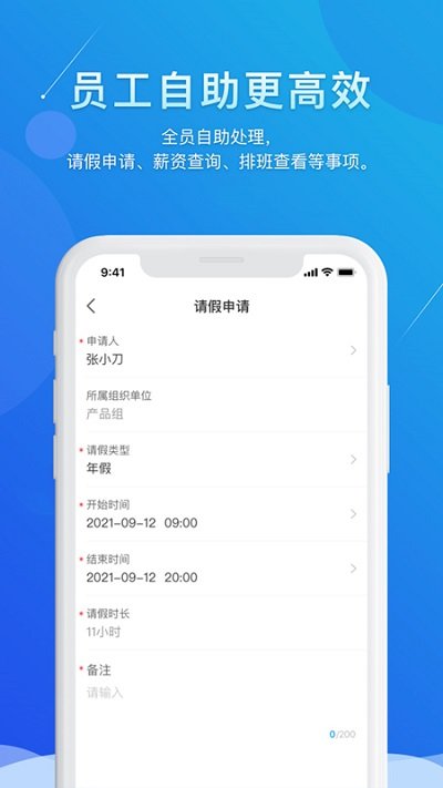 5、各类申请一键搞定:加班、请假、出差等复杂流程申请,手机轻松搞定