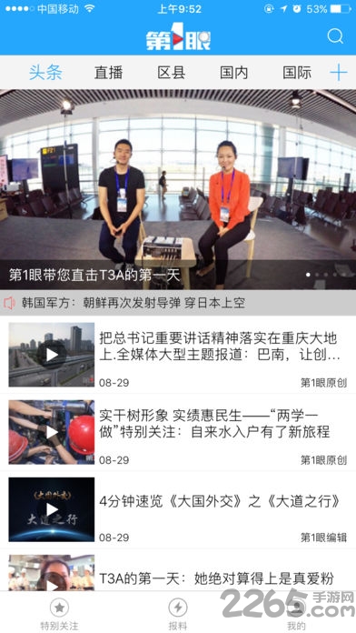 2、新闻直播:多通路的视频互动直播,为2265用户第1时间提供各类新闻现场的直播画面。