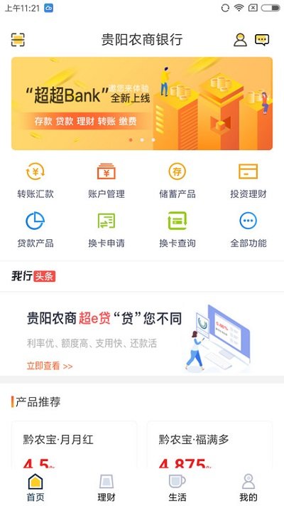 为您提供超级转账、余额查询、个人账户管理、交易记录查询等诸多金融服务,满足您的移动金融需求。界面方便简洁、可自定义自己喜爱的功能服务。高度集成了直销银行功能,直销银行用户专为非贵阳客户量身打造,方便客户进行理财交易。