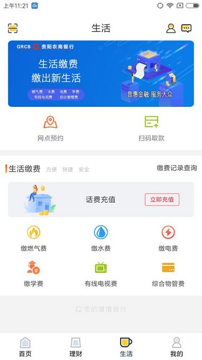 支持电费、水费、燃气费、有线电视费、话费、学费、物管费等生活缴费,满足大众需求。