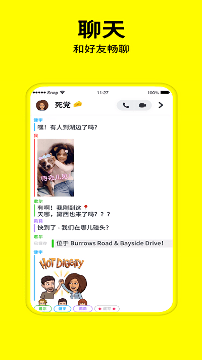你可以保持在线并通过实时信息与好友聊天,或者在群组故事里分享你的每日点滴。